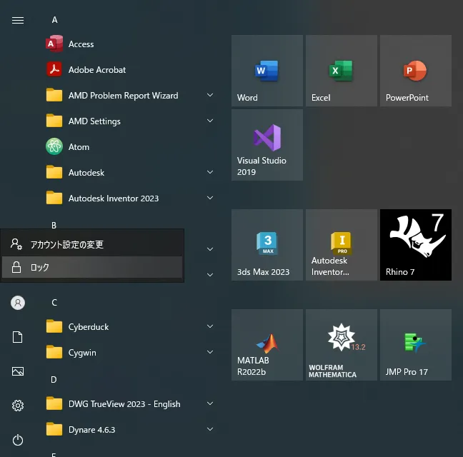 - Windowsマークをクリックし,スタートメニューを開いてください.