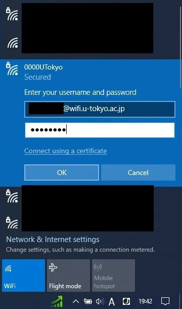 | Password | Enter the password for the UTokyo Wi-Fi. |