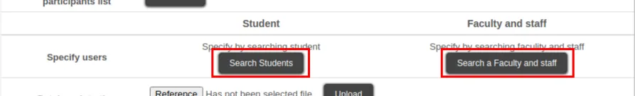 3. Click the button “Search Students” or “Search a faculty and staff” in the “Specify users” field.