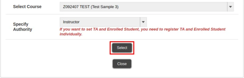 • When you wish to register users with “TA and Enrolled Student” authorities, you need to register the authority for the TA and the Enrolled Student separately.