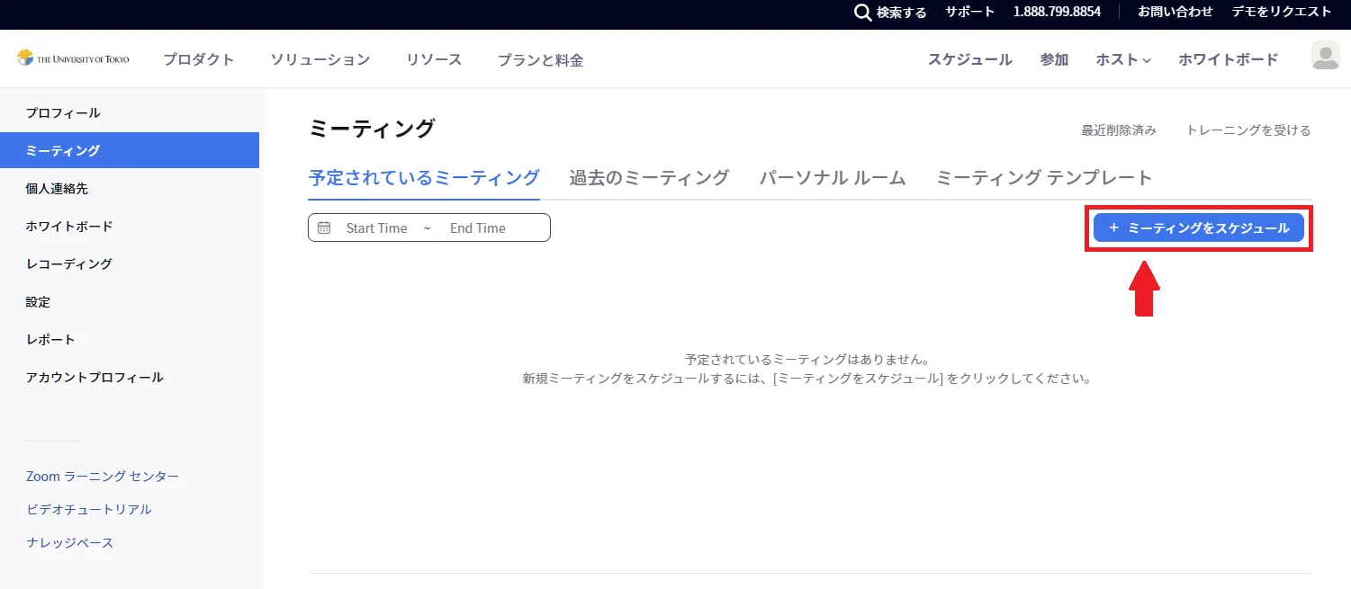 1. Zoom ウェブポータルのミーティングページにアクセスしてください.